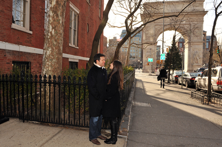 Rachel and Dean had their engagement photo session in Washington Square Park on December 29, 2011. They will be getting married soon in January at Bridgewaters which is located at the South Street Seaport in NYC. Take a look at a couple photos we liked from their shoot!
